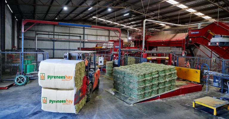 The Riverina plant plays a critical role in Pyrenees Hay Australia’s supply network, sourcing high-quality Oaten Hay from a wide base of local growers and processing to stringent export specifications.